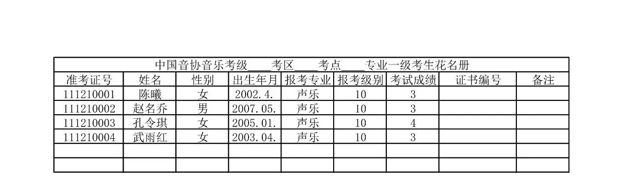 考试成绩:0为缺考,2为不通过,3为通过,4为良好,5为优秀。