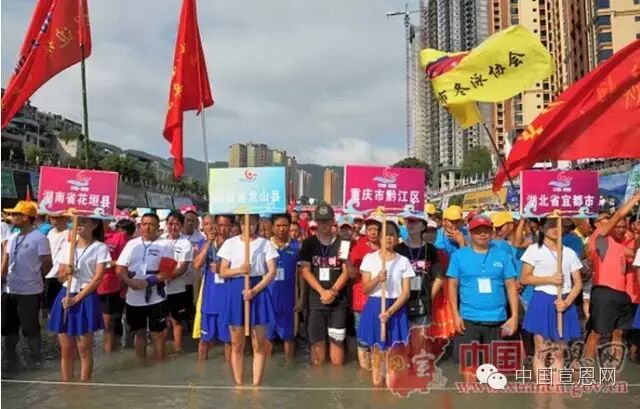 Duang~Duang~今天,属于武陵山区的水上奥运会也开幕了,并且是水上举行的哦~8月12日8时30分,倍受关注的“2016湖北水总杯”武陵山区龙舟争霸赛暨恩施州第四届水上运动会在美丽的宣恩贡水河开幕。本届活动为宣恩县在成功举办七届县级水上运动会和三届恩施州水上运动会的基础上围绕“竞技贡水、健康贡水、浪漫贡水、狂欢贡水”理念,经过对参赛对象、赛事规模、活动内容、宣传平台、运作模式等方面进行全面打造的“升级版”。活动共吸引了来自湖南省慈利县、花垣县、龙山县,重庆市黔江区,湖北省宜都市、秭归县及州内其他兄弟县市、州直单位,县内各单位、社会团体共68支队伍1600余名运动员参加游泳、龙舟比赛、水上排球和水上拔河等水上运动项目的角逐。活动期间,宣恩还结合县内独特的自然景观、历史人文、农业产业及民俗文化等优势资源,安排了千人畅游贡水河、水上音乐节、运动员K歌大赛、贡水女神评选、摄影比赛及民族服饰展、旅游产品展、土家特产展、特色小吃等一系列集体育赛事、旅游推广、传统美食、民间文化于一体的精彩活动,为各地来宾、运动健儿及游客带来一场精彩纷呈的赛事盛宴。看着裁判代表宣誓的样子,多有气势,运动员们敢耍“小聪明”么!来自全县46个县直单位的干部职工们纷纷前来参加这场盛大的水上聚会。比赛正式开始后,贡水河瞬间被激荡起无数浪花,选手们个个劈波斩浪,有的如飞鱼般飞速向前,有的则稍显缓慢,当天,不少市民也在贡水河畔观看了这场比赛,一阵阵呐喊加油声更是点燃了选手们的激情,游泳现场气氛高潮迭起。