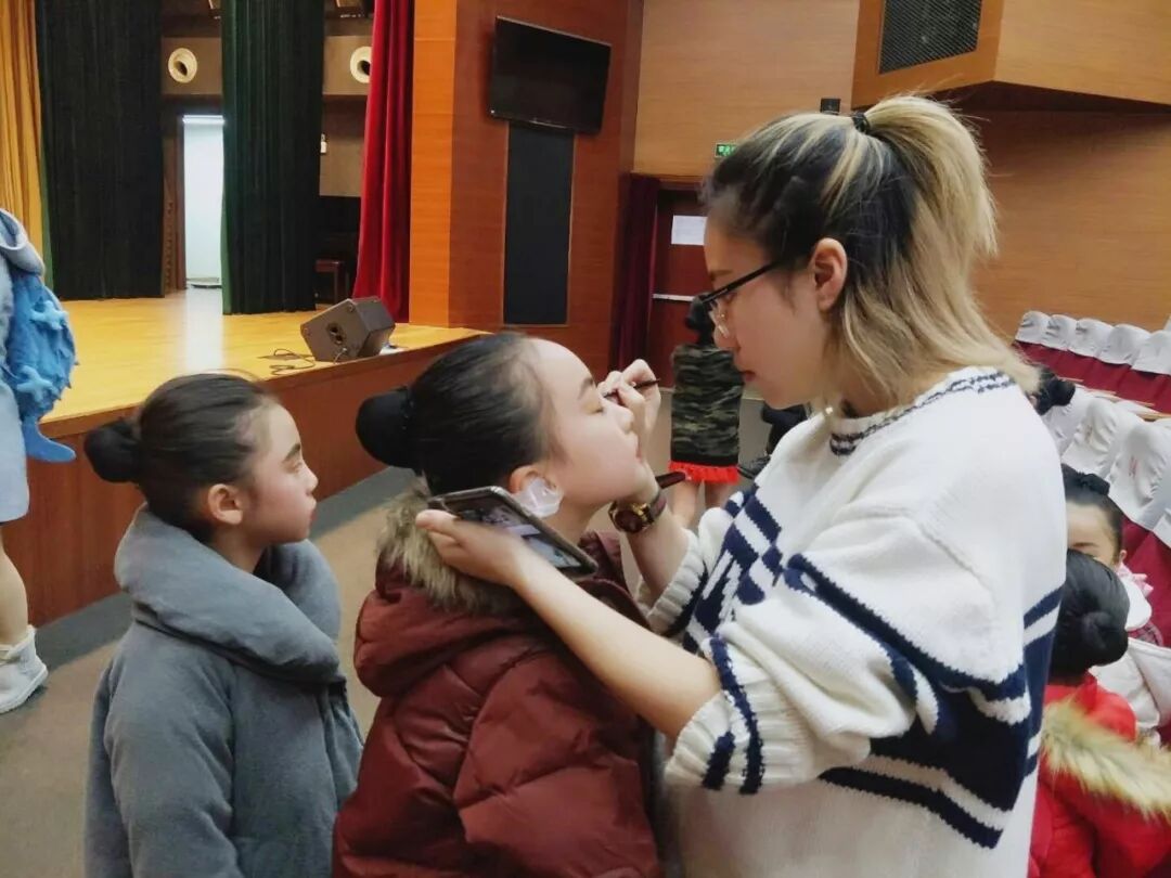 也很庆幸我们有那么多优秀的老师们辛勤付出。学生们也很努力哦!让我们看看后台的他们在做些什么,彩排舞蹈.练习歌声.又是化妆又是换装真是舞台下的小忙人。