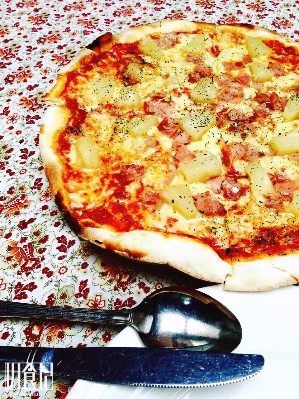 第二道主菜是夏威夷风光Pizza,在我们吃货界有这样一个结论。100个Pizza店,就有100种口味的夏威夷风光Pizza味道。而这家的夏威夷Pizza味道排名,可以在前10名。