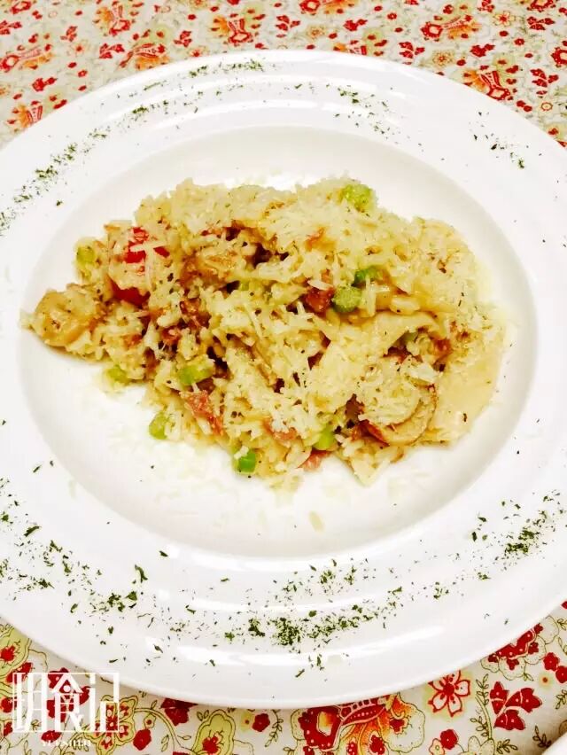 点完餐30分钟后,我们点的第一道菜终于上桌了。意式风干火腿牛肝菌烩,摆盘70分,色泽80分,味道95分,没想到这样一间咖啡厅,做出来的正餐还这么有水准,着实难得。徒有其表的咖啡厅我是见多了,不过小芳庭却让我刮目相看。
