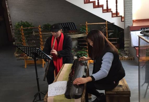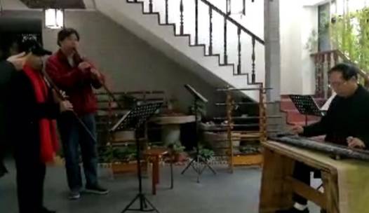 酒足饭饱后,精彩的下半场开始。时而古琴独奏,时而琴箫合奏,祝老师还拿出中阮与大家一起合奏和分享,临近傍晚,随着琴、箫、人共同演绎的阳关三叠,本次雅集达到高潮。