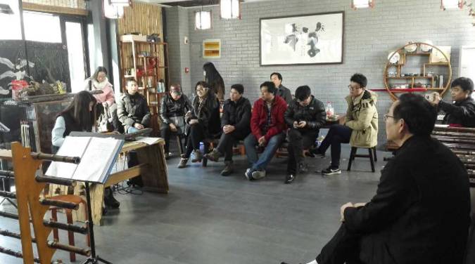 申城的朝阳,刚刚睁开惺忪的睡眼,琴箫乐坊就已经传出了琴声、箫声、欢乐声……来自闵行、浦东、闸北、徐汇、嘉定等不同方向的箫友已经齐聚在此,品茶、抚琴、弄箫,特别是师承李祥霆大师的祝老师也来为本次雅集助兴。