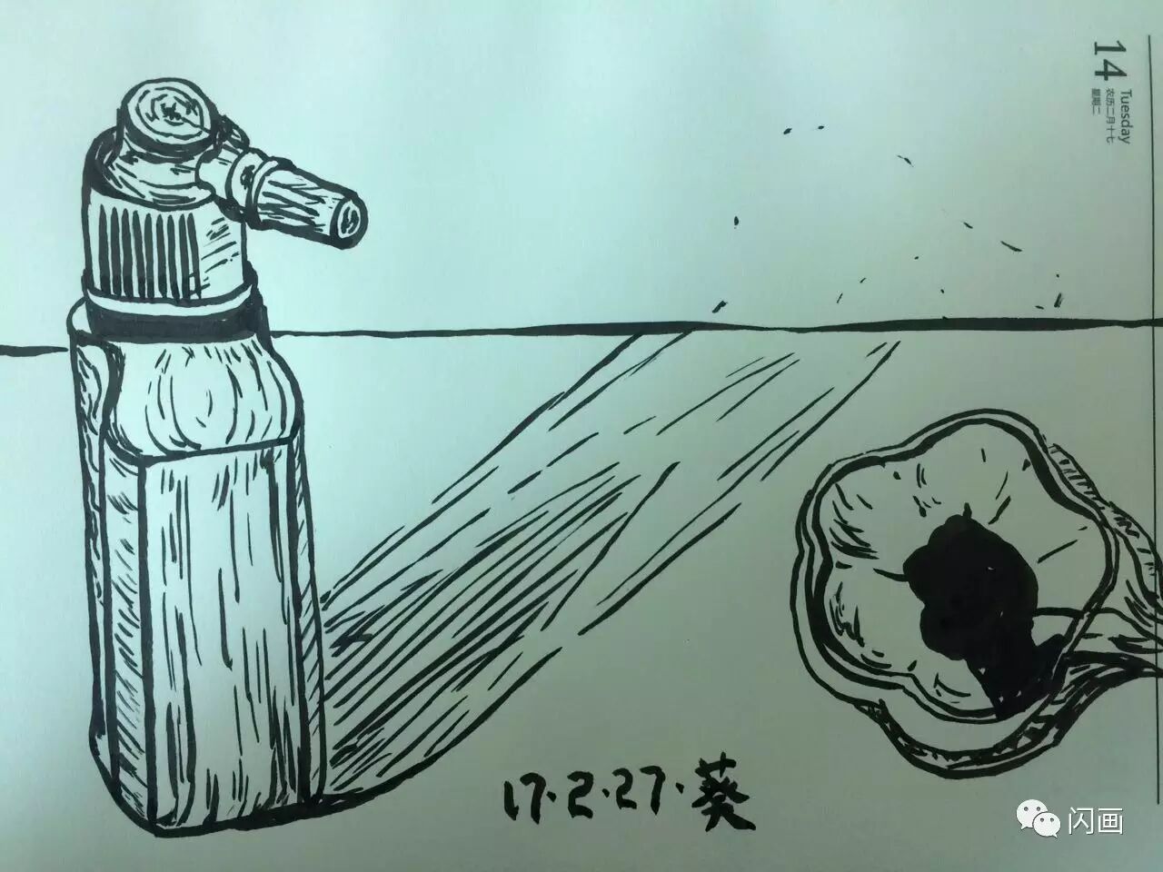 本月感悟:线条比之前好多了,但是还不流畅不流利,尤其瓶子的侧身透视还不够好,阴影继续加强努力。