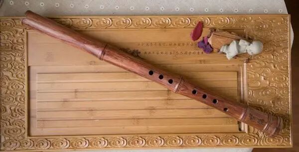 箫的构造比较简单,形状和笛子非常相像。它一般用紫竹、黄枯竹或者白竹制作,管身比笛子稍长一点,顶端用竹节封口,封口的边缘上开有一个吹孔,管身正面还有五个音孔,背面靠上的部位还有一个音孔,另外,管身下端的背部还有三到四个出音孔和助音孔,用来调整音准,美化音色和增大音量。
