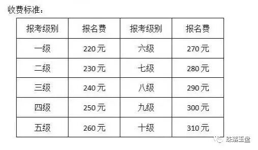 每个考级机构收费标准略有差异,详情请参照官网通知。以下为中国音乐学院2017年深圳区考级收费标准。
