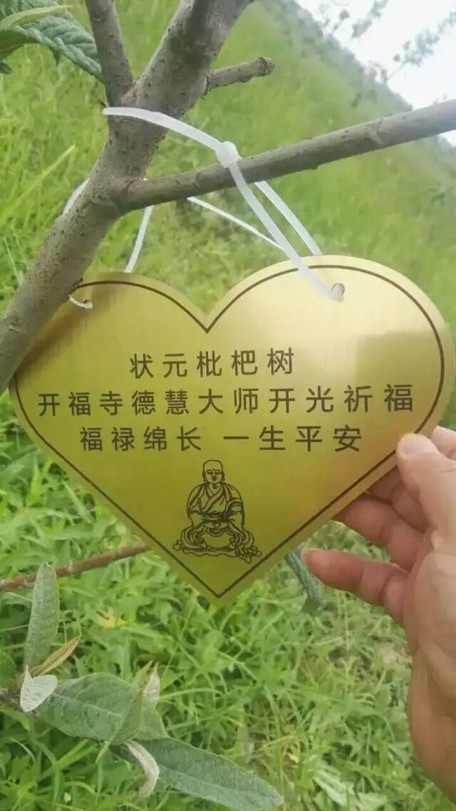 天籁村圣邀海门开福寺关公文化倡导者德慧大师为枇杷苗夹持祈福:祈福江海学子四季安康、学业有成!状元枇杷树苗相伴成长,福禄绵长,平安一生!