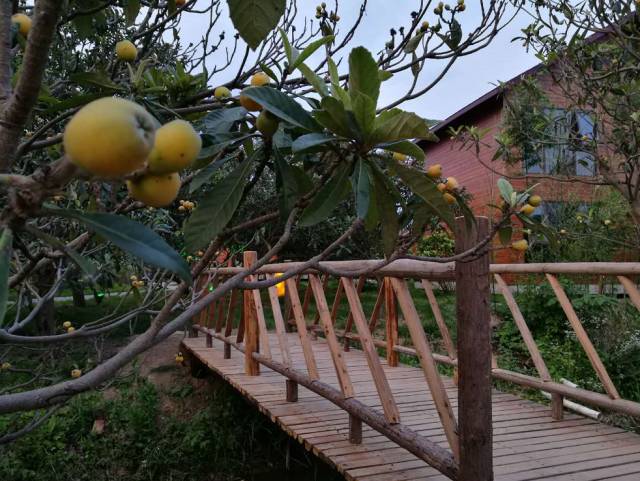 这里的树木屋十分受欢迎,天籁村巧筑木屋于枇杷林之间。 每栋树屋门口有许多植物,周围环着枇杷林与小河,幽静自然