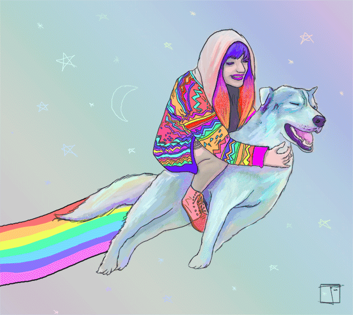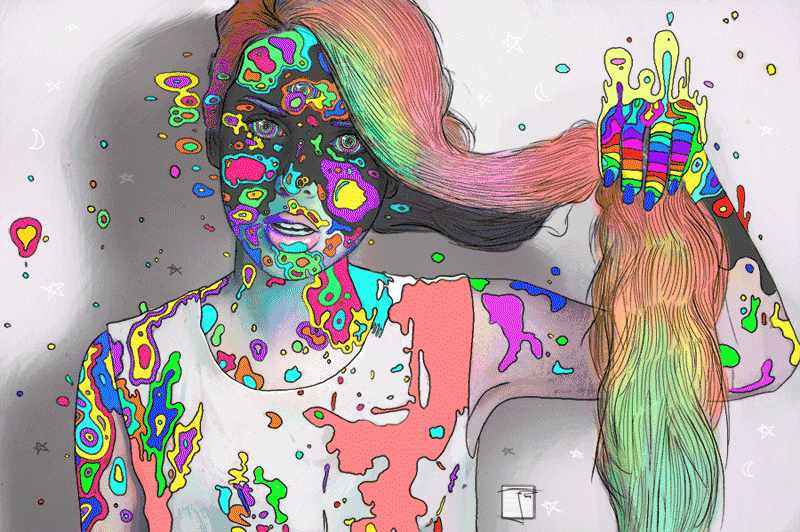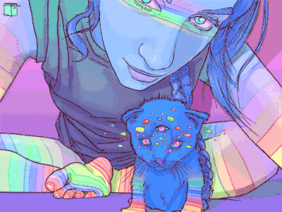 他作品包含各种跳动的多色宠物和人像动画,配色是更加诱人的彩虹糖