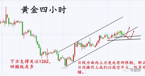 还是前面反复强调的观点:交易,耐心和持久胜过激烈和狂热!一句话代表了当前的局势,持续慢节奏的震荡上行,需要更多的耐心与坚持!黄金,价格如期继续攀升,但上涨动力还欠缺,慢节奏的震荡上行。当前多头局势还是乐观的,金价已成功站上1260关口,直逼关键阻力位1268一线,斐波纳契50%强弱分界线。突破进一步确认触底上升,继续看齐61.8%阻力位置,以及前一波高点千三关口。反之,不进则退回落测试支撑.而从当前的局势来看有点尴尬,究竟黄金破位上涨还是低破下跌呢?