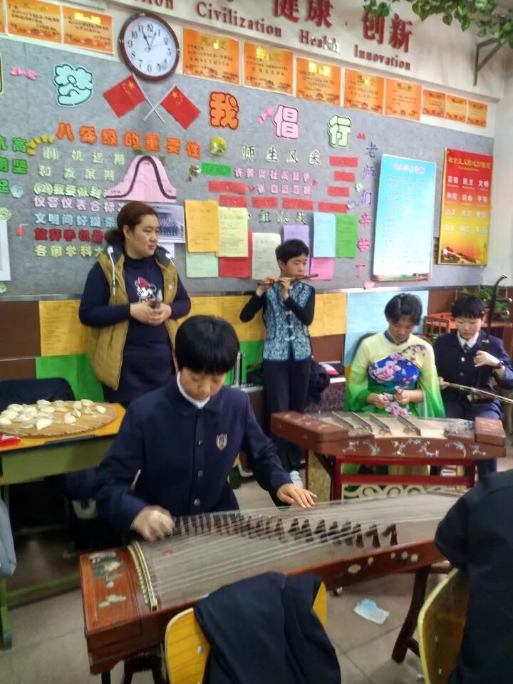 扬琴、琵琶、古筝、二胡、笛子……韵扬八班的同学们组成一支民族乐器演奏团,一曲《 步步高》 热情洋溢。