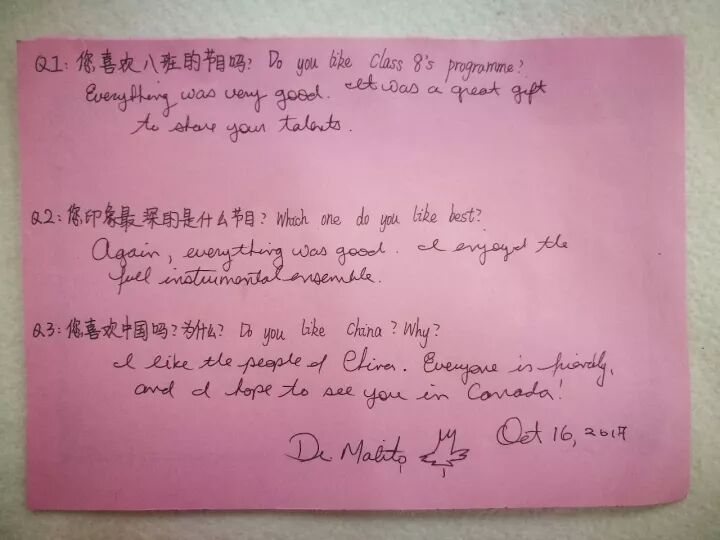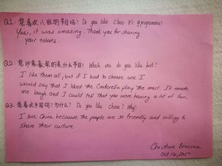 活动的最后两位老师接受同学们的采访,对活动表示了极大的称赞,对同学们的才艺和能力表示了极大地认可。