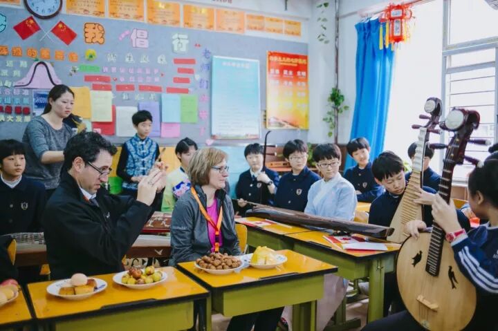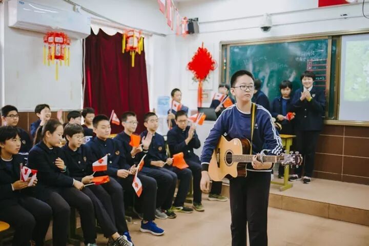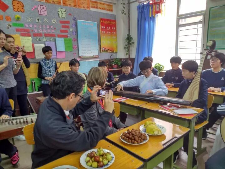 两位加拿大老师被深深吸引,拿出手机录下同学们的精彩演奏。
