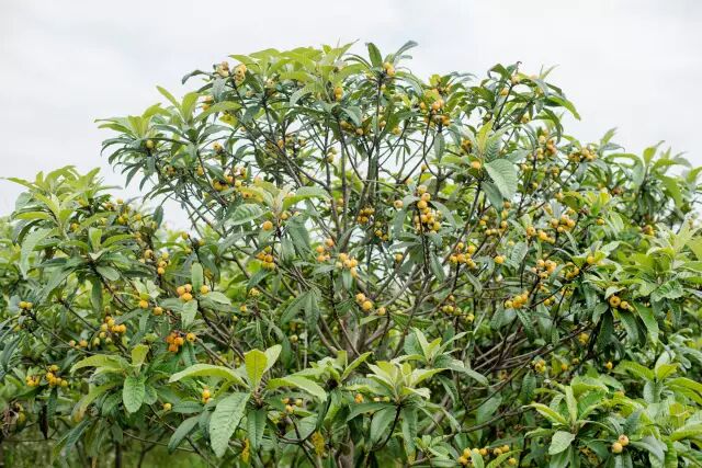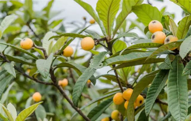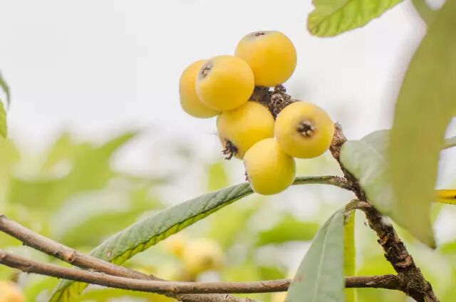 与大部分果树不同,枇杷在秋天或初冬开花,果子在春天至初夏成熟,比其它水果都早,因此被称是"果木中独备四时之气者"。渐渐地,由青变黄,便成熟了。每到春末夏初,仿佛就是一夜之间,枇杷就会金灿灿地挂满枝头,让幸福来得猝不及防。