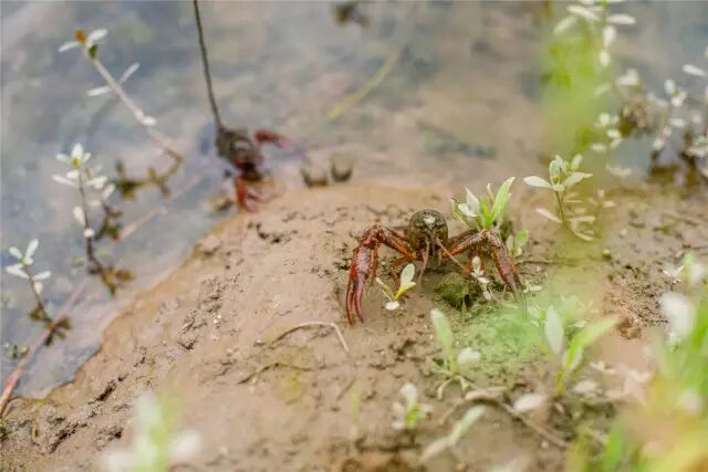 慢岛的水塘里,处处都可以寻到野生龙虾和螃蜞的踪影。