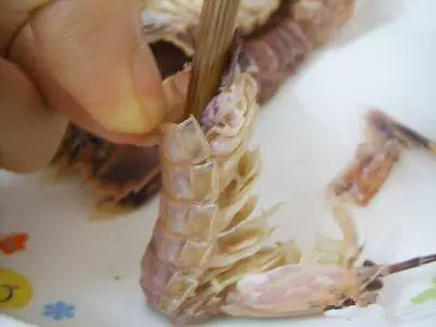 另一种方法就是头部数下第四节开始把边上一侧的壳轻轻掀开,一手捏着头,另一手拿着壳一掀就搞定。