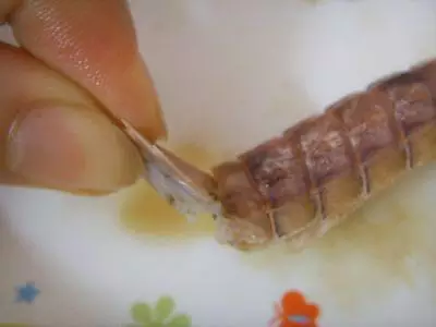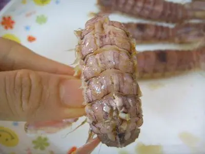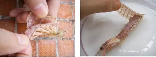 1.把尾部最外面两个小脚拧断,然后捏着尾部轻轻往上一折,再拧掉。