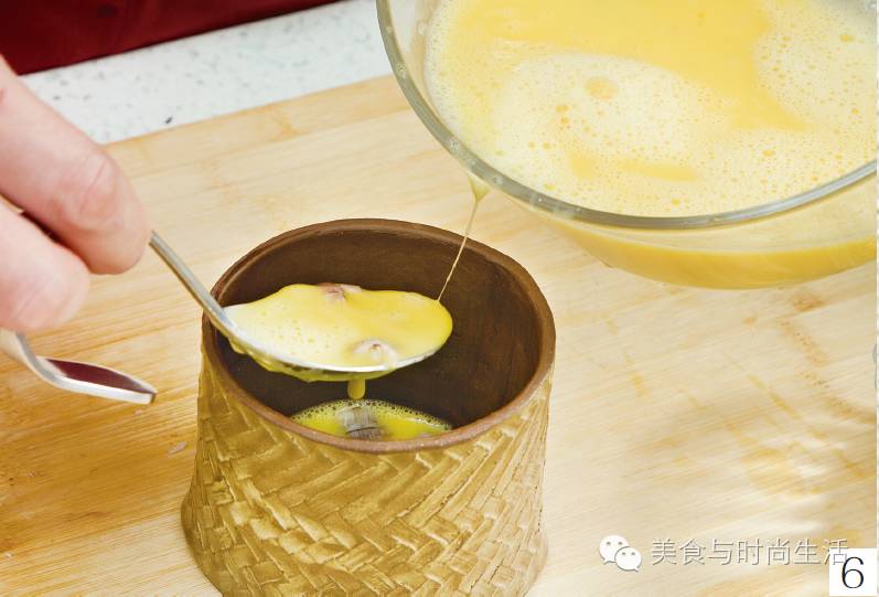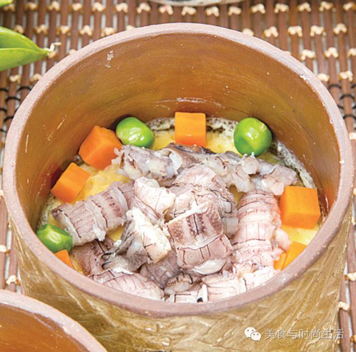 6.鸡蛋打入碗中搅散成蛋液,与皮皮虾肉混合,加入胡萝卜丁、青豆,放入容器内,在蒸锅内用大火蒸10分钟至熟后调味即可。