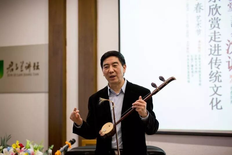 在讲座进行中,他反复强调:传统文化即传世文化,它历久弥新,具有超乎想象的生命力,欣赏国乐是走进传统文化最便捷的路径,希望大家能对此不断关注。最后,沈诚教授还取出随身所带的板胡,为在场观众演释不同地方具有民俗特色作品,大家在精彩乐声中真实领略到了沈诚教授所强调的诸多欣赏要素,讲座在阵阵掌声中达到了高潮。