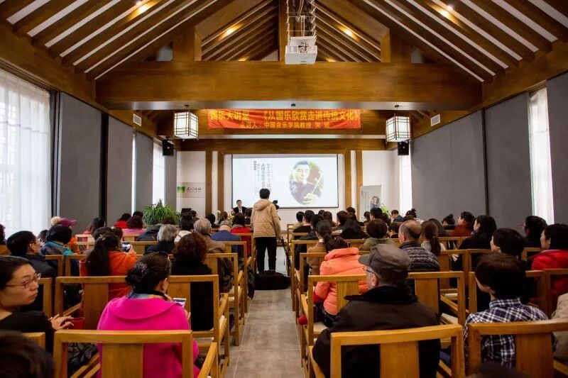 沈诚教授认为国乐艺术是中华传统文化的声音,这些声音来自不同的历史年代,不同地域不同民族,它们承载了大量中华特有的文化印迹和基因,不同时代的中国人无不受到它们的影响和塑造,它们是营建国人精神世界的蓬勃血脉。在国乐的内涵解读上,沈诚教授从八个方面立体而详尽地分析了国乐艺术的乐器、类型、历史脉络、与文学艺术的关系、传承与流变、现当代的发展观念、对精神世界的建构、对世界的影响等问题。他引经据典、娓娓道来,在场听众都被其幽默诙谐、深入浅出的语言所吸引。