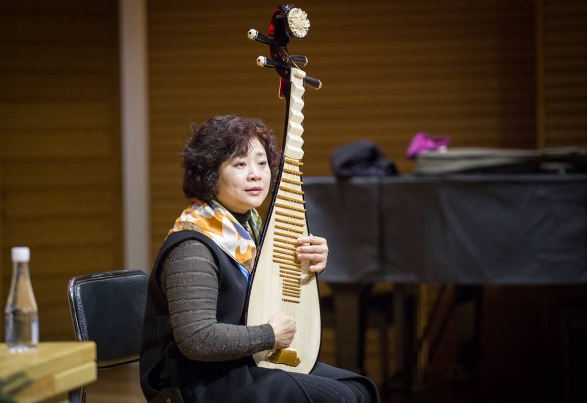 杨靖老师讲解了琵琶的声音表现能力是具有宏观性的、多层次的,可以表达非常细微的、唯美的声音情感,也可以表达非常宏大的场面。她说:世界上能够栩栩如生表现一场战争的乐器只有琵琶。表现力的丰富既是琵琶的优点,但反过来也是学习琵琶需要克服的难点。