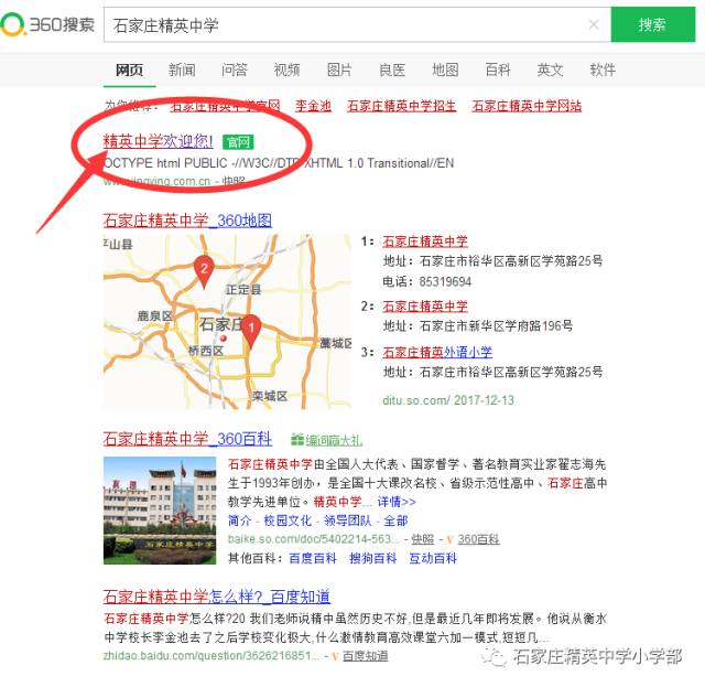 3、进入“石家庄精英中学备案号:冀ICP备09021937号”,点击“小学部”