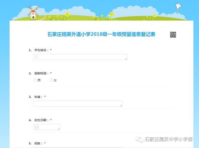 5、进入“石家庄精英外语小学2018级一年级预留信息报名表”