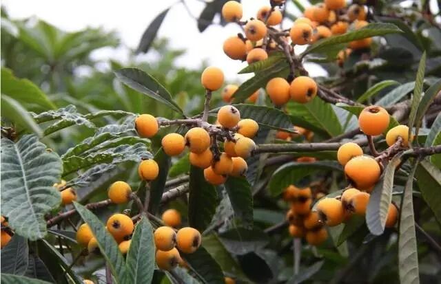 枇杷,因叶子形状似琵琶乐器而名,果子在春天至初夏成熟,比其它水果都早,因此被称是“果木中独备四时之气者”。