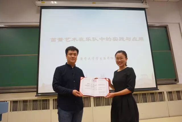 讲座的最后,清华笛协邀请了王华老师担任笛协的艺术顾问,并向王华老师颁发了聘书,接着所有到场的同学、工作人员都上台和王老师进行了合影。讲座在热烈的氛围中圆满地落下了帷幕。