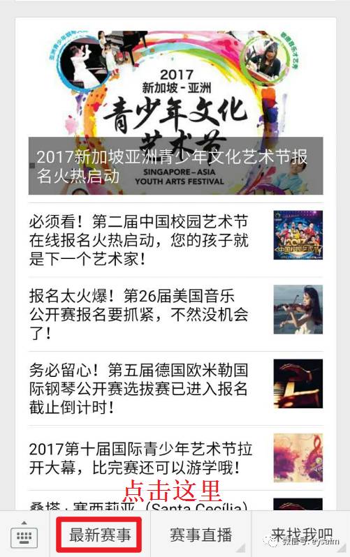 按照下图操作:即可查看更多国内外音乐赛事信息▼