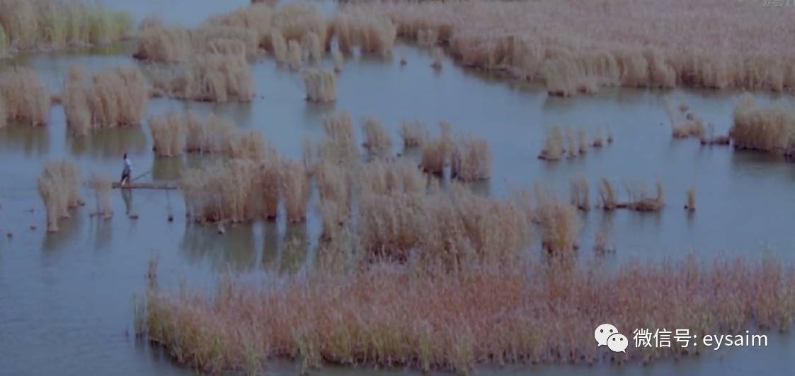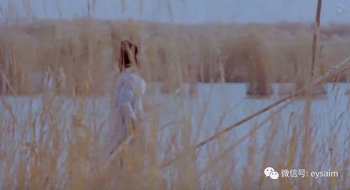 镜头逐渐靠近,在芦苇的缝隙中,显出这位女子的背影。