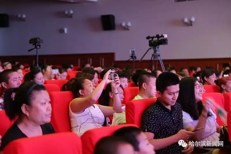 黎明第九小学校要进行公益演出的消息不胫而走,众多单位和网民都踊跃参加。在演出现场,有道里区关心下一代工作委员组织的各办事处“五老”,有来自新阳路街道办事银都社区自发“组团”的居民,有安静小学校的家长和孩子,还有在哈尔滨新闻网微信后台留言要报名参加的网友。值得一提的是,在今年哈尔滨新闻网举办的“六一”爱心公益活动中,接受爱心企业帮扶的新一小学校学生,也在老师的带领下,来到现场观摩演出!