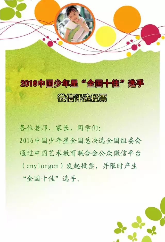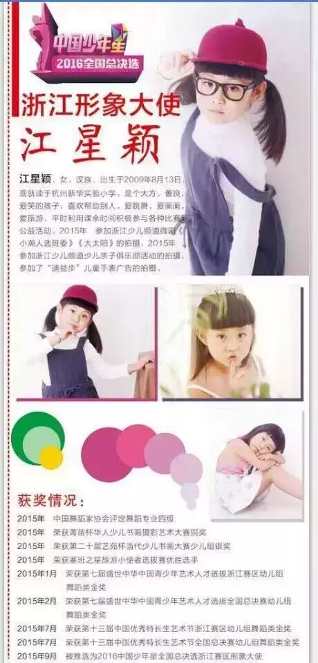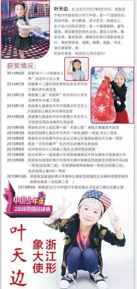 3、全国十佳的个人档案、艺术照将有中国少年星组委会在其官网及微信公共号为选手制作个人网页,宣传期为一年。