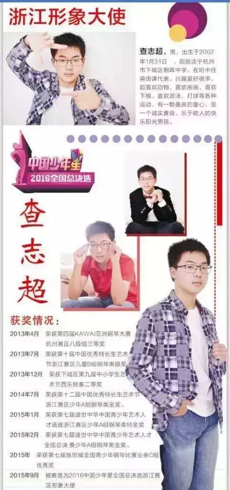曾获2016中国少年星全国总决选深圳赛区选拔赛,荣获古筝金奖;