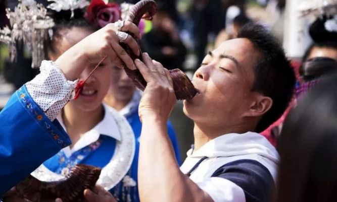主要盛行于黔、滇及相邻川南、桂北、湘西南苗族地区。因以一种特制的水牛角作为酒具盛酒,故称为牛角酒。