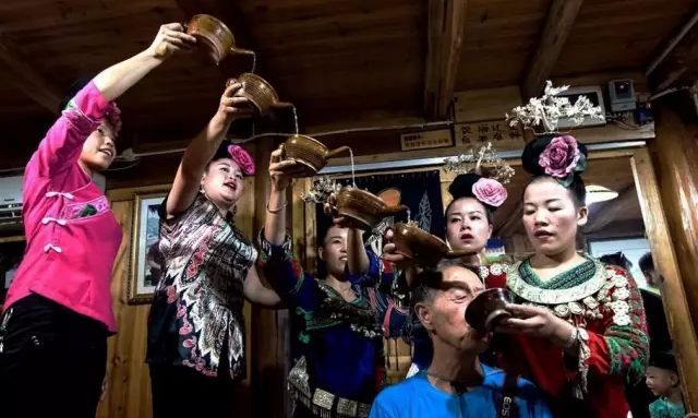 客人来了以美酒相待,是一种神圣而不可改变的待客礼节。你如果来到了苗寨,苗族人加会拿出自家亲自酿制的各种酒来款待你,说明你是他们的贵宾(会被他们的“热情”灌醉)。