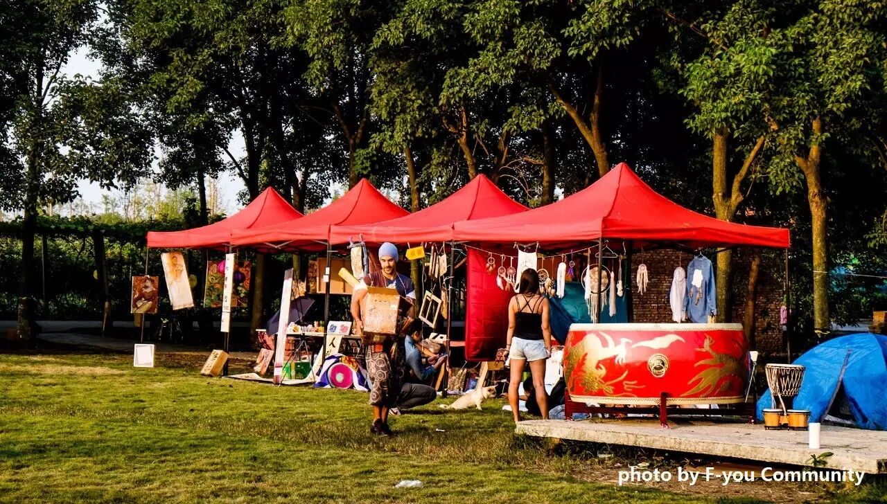 a)帐篷扎营√。太湖迷笛营设置了专门的露营区,并提供全套露营设备租赁(参考价:200元/双人3天)。同时迷笛营也提供淋浴间共露营者使用。←推荐
