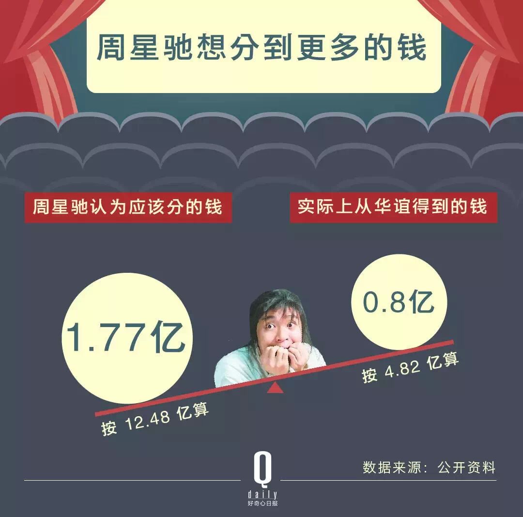 但是,华谊兄弟方面却认为,虽然总票房是 12.48 亿,然而分到华谊兄弟的票房收入却不到 5 亿,并不满足票房分红的条件,也就用不着给周星驰支付票房分红。
