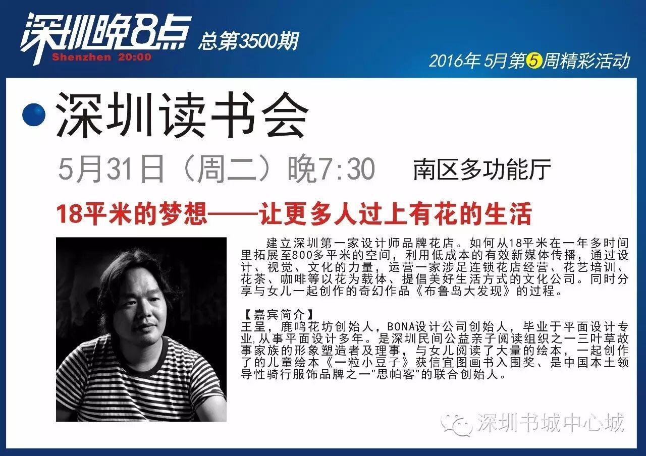 本期读书会嘉宾将会和读者分享如何在一年多时间里将18平米拓展为800多平米的空间,利用低成本、有效的新媒体传播,通过设计、视觉、文化的力量,运营一家涉足连锁花店经营、花艺培训、花茶、咖啡等以花为载体、提倡美好生活方式的文化公司。同时将与大家分享与女儿一起创作奇幻作品《布鲁岛大发现》的心灵感悟和各种有趣故事。
