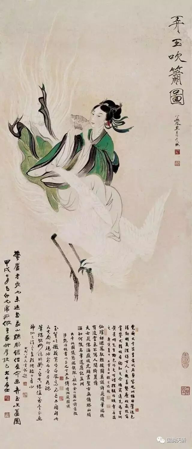 几年后,声音同凤声一模一样,常引来凤凰停留在家中。秦穆公大喜,为其建造了凤台。一日在凤台上吹奏时,萧史乘龙,弄玉乘凤,夫妇二人竟一同登仙而去了。
