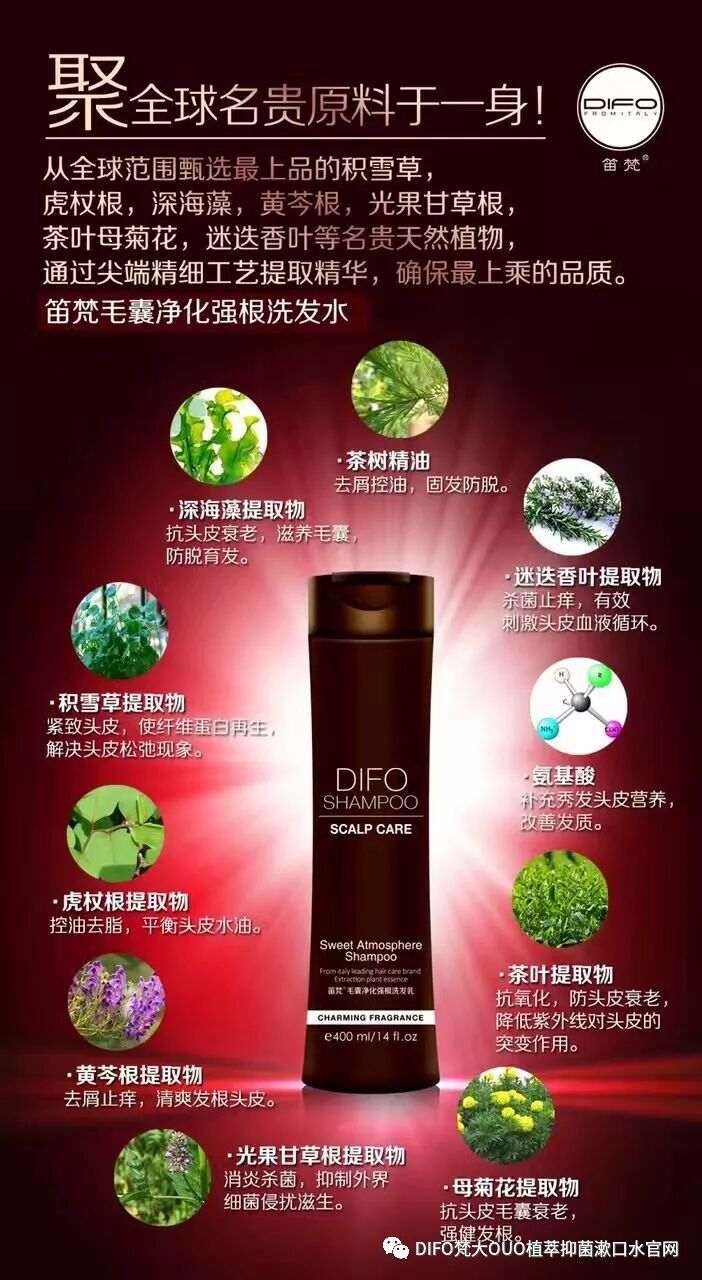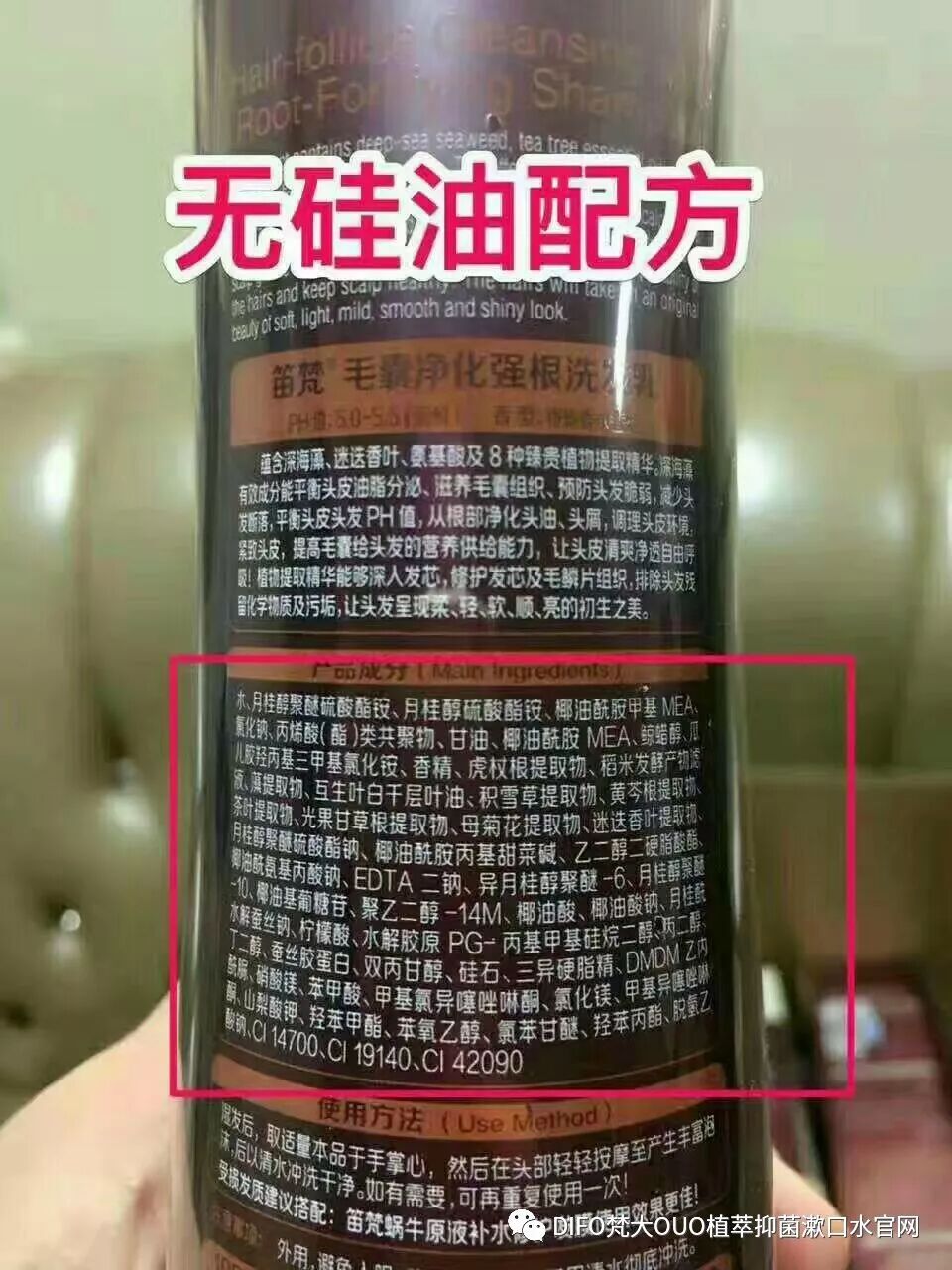 笛梵毛囊净化强根洗发乳表面活性剂(surfactant):表面活性剂的作用是增加润湿性、乳化性、起泡性;笛梵/DIFO用的是洗面奶的发泡剂,这是种温和无刺激,并且不易引起过敏反应的表面活性剂。所以你们在洗的时候会感觉泡沫少,这就是错误的感觉,不是泡沫少,而是泡沫细!泡沫细你会感觉泡沫帖头皮很近,只有细小的泡沫才能彻底清洗头皮毛囊以及毛发深层的污垢以及化学残留物和多余油脂,所以笛梵/DIFO洗发水可以直接洗脸当洗面奶来使用。脸皮皮肤组织细只有细小的泡沫才能清洗毛孔的污垢。洗发水越是感觉泡沫丰富不一定是好的,大的洗发水越不好,清洁效果越差。