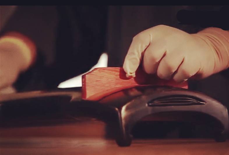 ▲大漆工艺:找到良材后,要斫制,面底板粘合后,通常固定一个月,稳定防止变形。然后上灰胎。上完灰胎后,放置一年最好,少也要1个月,然后打磨、上大漆。擦一遍大漆,要放在荫室中至少一天,干燥后才能上第2遍。大漆要擦30遍以上,就是30天,擦50遍就是2个月。一床琴,最快也要6-9个月为其生产周期。要是求精、求好,周期就要适当延长,最少一年。