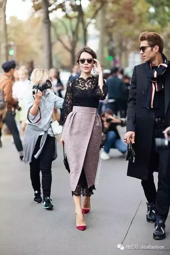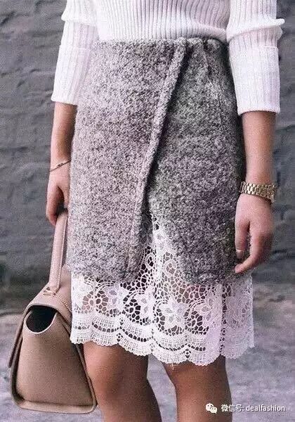 但是从侧边开衩的毛呢裙里露出来的精致蕾丝,就让你在“撞衫不可怕,谁丑谁尴尬”里成为了大赢家。