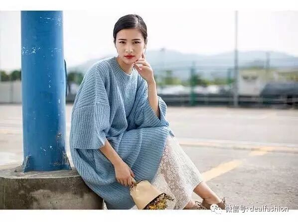 在一众深色系冬装、春装里,蓝白+蕾丝一下就跳脱出来了。