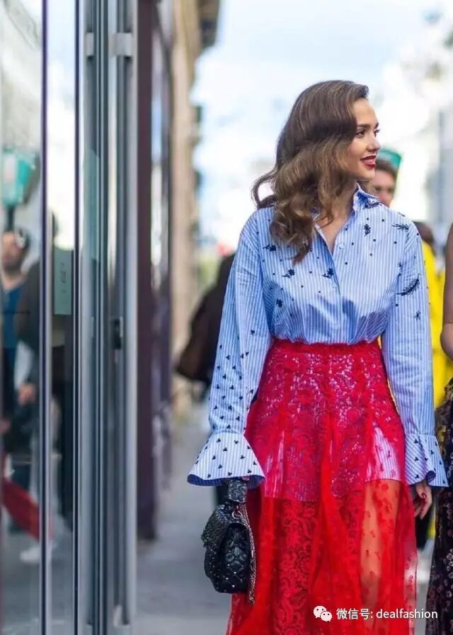 日常的穿搭中还可以将透视作为半裙内搭。小仙女们日常上班,就可以选择这种搭配方式。