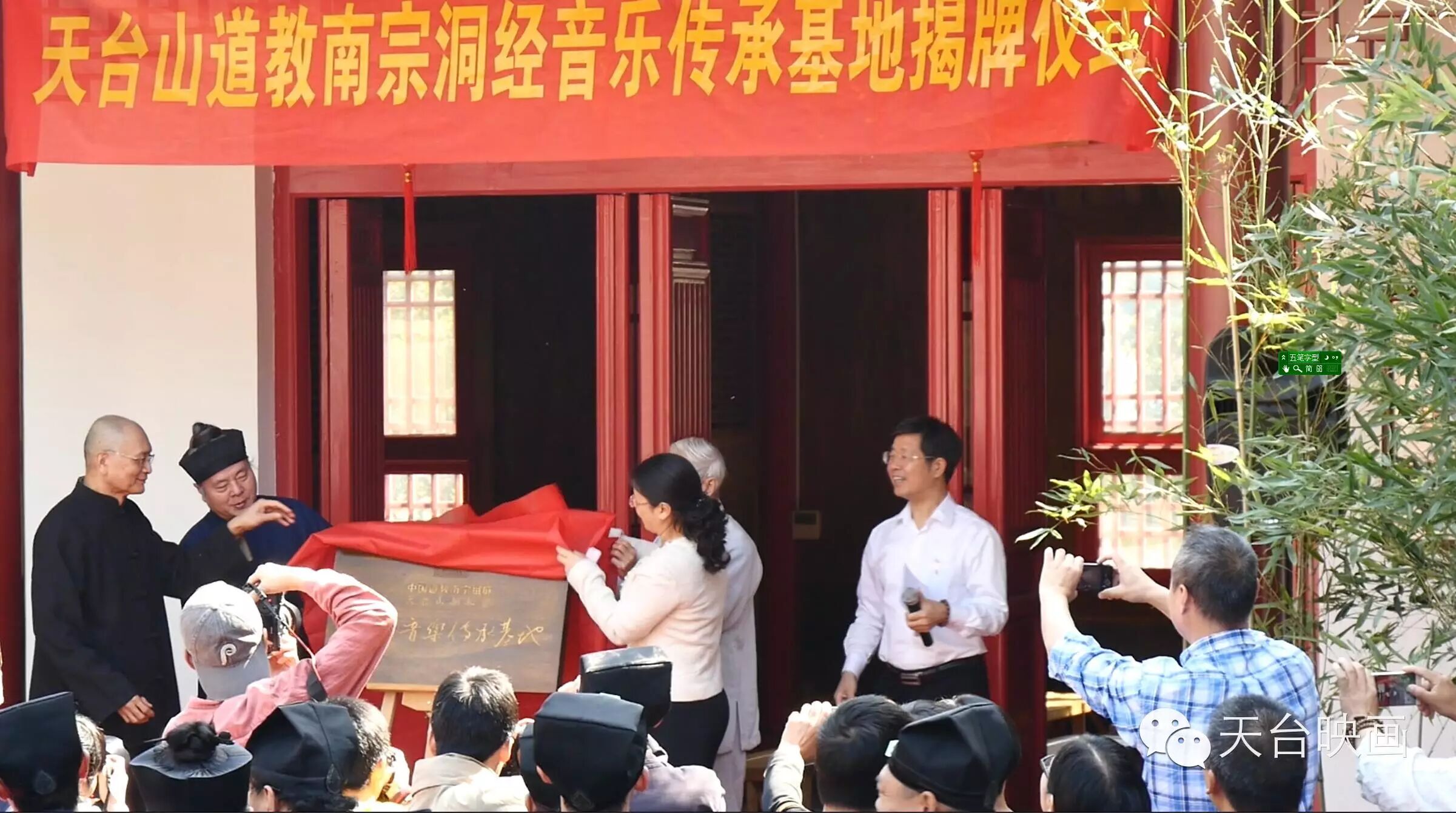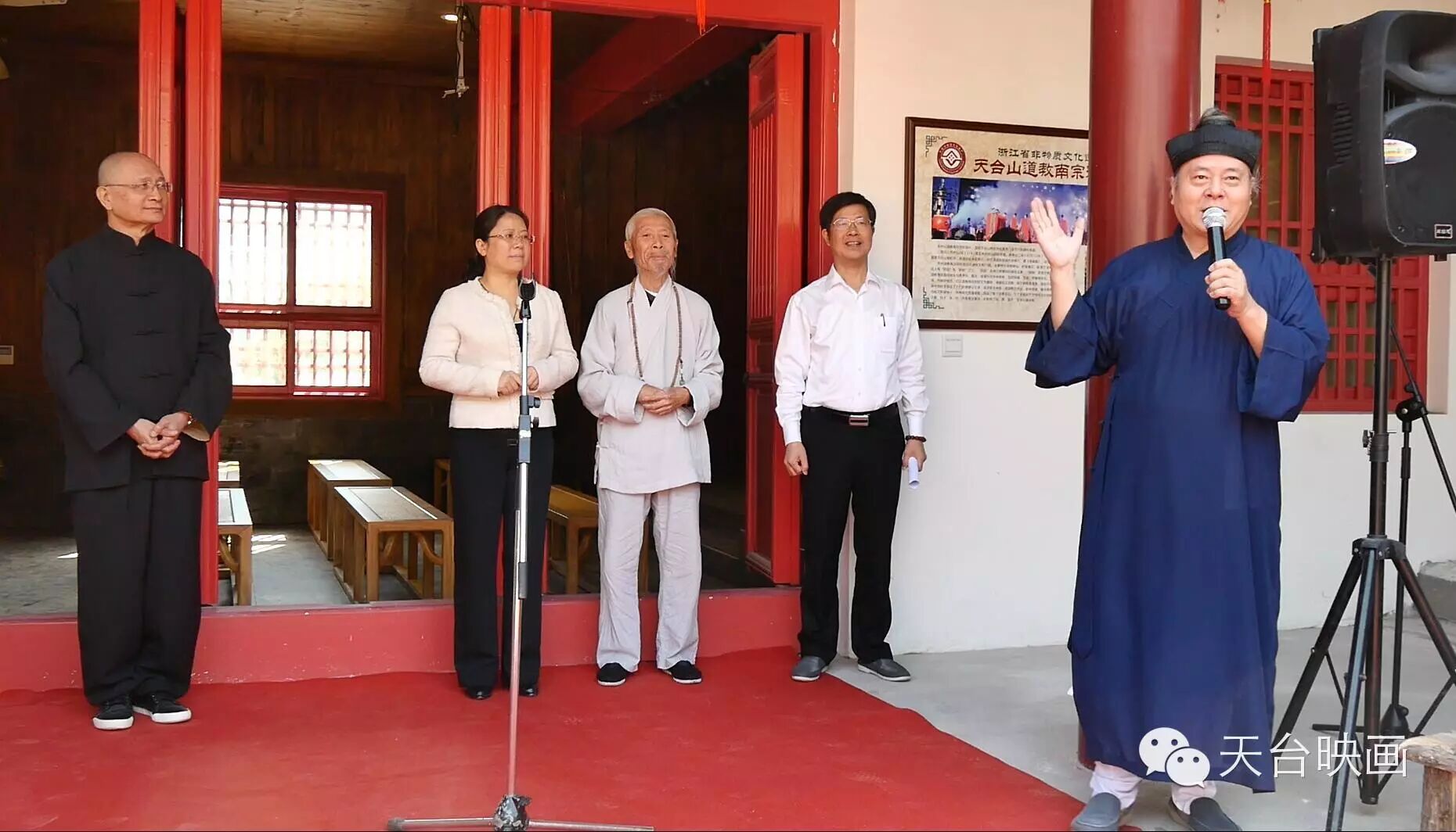 揭牌仪式由天台县文广新局王正炳局长主持,天台县人民政府叶玲君副县长、中国道教协会副会长、桐柏宫住持张高澄道长、古琴家汪铎、香港名家谭宝硕致辞祝贺传承基地的落成必将成为传承、学习、保护、发展天台山道教南宗洞经音乐新的平台。 今后,县文化馆、非遗中心、桐柏宫、天台山民乐团将着力于基地道教音乐学术研究、艺术实践和人才培养的积极探索,以道乐为载体,弘扬天台山文化,发展文化旅游事业,使之成为展现天台山深厚的文化底蕴和历史文化遗产的城市名片。