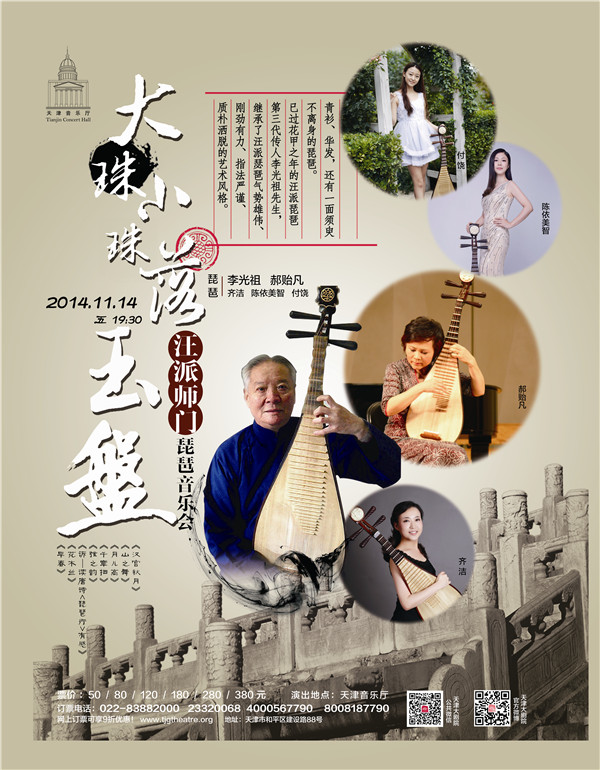 2014年11月14日,继去年年末在天津大剧院音乐厅成功举办琵琶独奏音乐会之后,时隔一年,著名琵琶演奏家李光祖将再度来津举办琵琶演奏会。与去年不同的是,此番李光祖先生不仅将再次莅临津门以琴会友,还将携众高足一齐现身天津音乐厅舞台,向天津观众全面展示当代汪派琵琶艺术的风采。