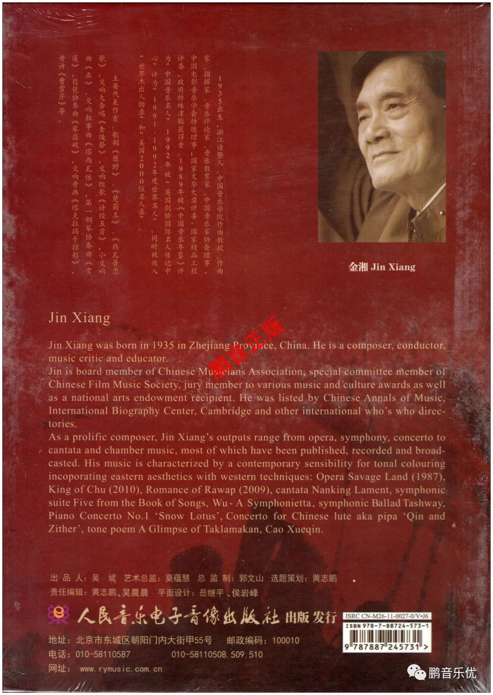 《琴瑟破》金湘,作曲家、指挥家、音乐评论家。1984年2月任中国音乐学院作曲系副教授兼作曲系教研室主任,1990年7月赴美国西雅图作为华盛顿大学访问学者,1991年9月任美国首都华盛顿歌剧院驻院作曲,1992年转至美国纽约朱丽亚音乐学院考察访问,1994年回中国音乐学院任作曲教授。