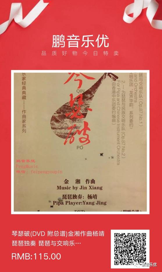 【鹏音正版 琴瑟破(DVD 附总谱)金湘作曲杨靖琵琶独奏 琵琶与交响乐】http://m.tb.cn/h.Cu1ivs 点击链接,再选择浏览器打开;或复制这条信息¥scQo0RoP54m¥后打开 手淘