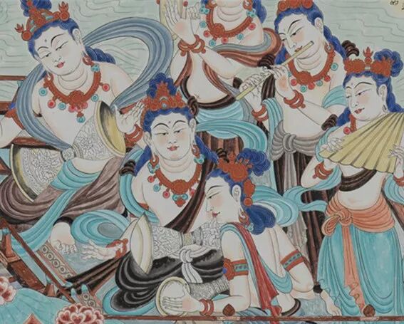 南音的演奏上保持在唐宋时期的特色,例如南管中主导乐器——琵琶,未随时代演进,仍保持唐时的大腹短颈,弹奏上还是用横抱拨弹。南音中所用的“拍板”及其演奏方式与敦煌壁画中的伎乐图一样。